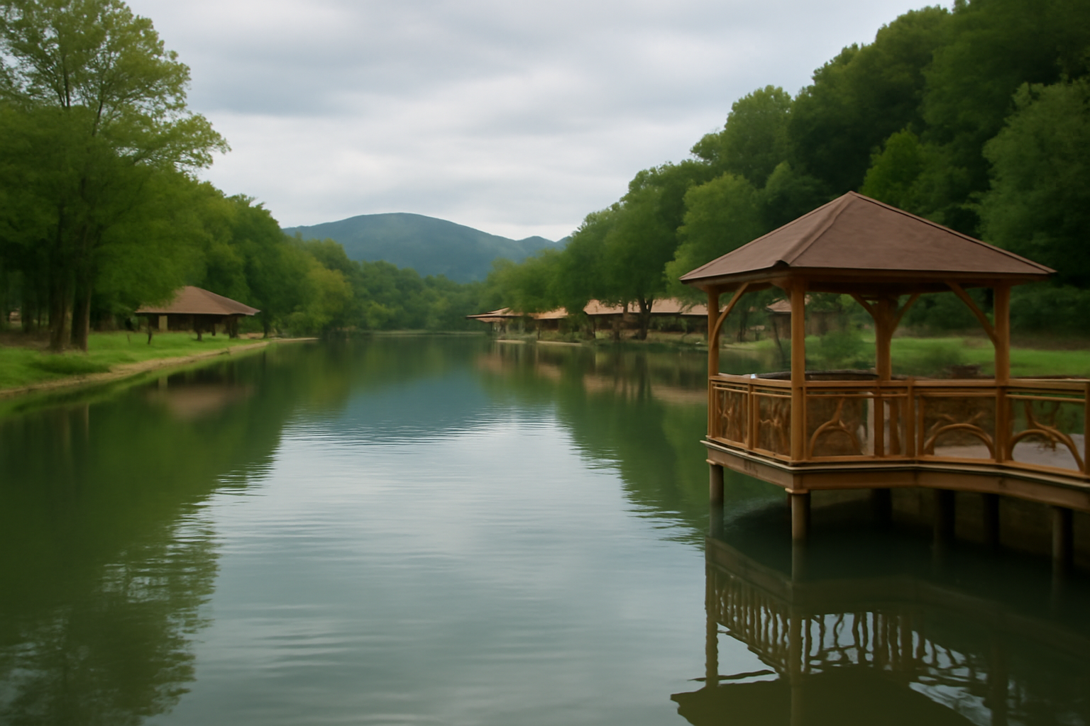 Это живописное место отдаленно напоминает курорты на Мальдивах — уютные беседки-бунгало стоят прямо на воде. Круглый год здесь можно рыбачить всей семьей с детьми, ловить карпа, сазана и форель. После удачной рыбалки улов можно сразу же приготовить в специально оборудованных местах. Спокойная и умиротворяющая обстановка идеально подходит для размеренного семейного отдыха вдали от городской суеты.