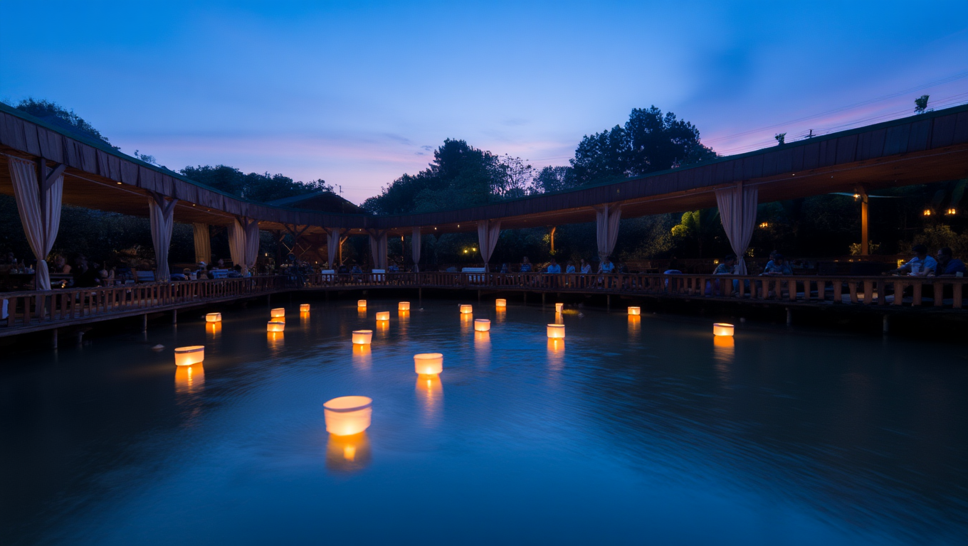 Необычный способ провести вечер — отправиться на ночную рыбалку. До двух часов ночи здесь можно ловить карпа, осетра, форель, тилапию, канадских и африканских сомов в двух живописных озерах. Для отдыхающих предусмотрены беседки с мангалом, где улов можно сразу приготовить.