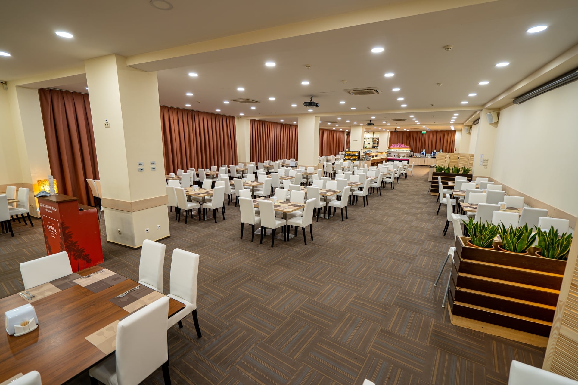 В летний период и во время большой загрузки зал «Русский» работает в качестве дополнительной площадки для формата «шведский стол».